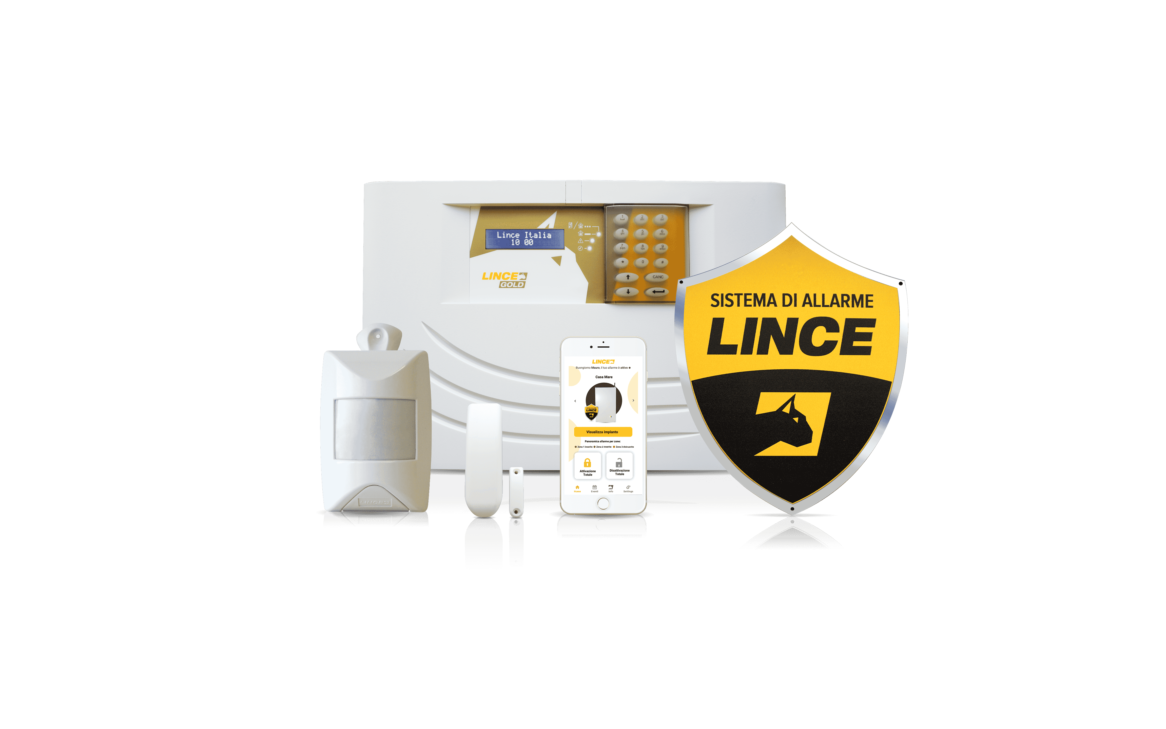 Si, con LINCE GOLD puoi gestire in autonomia il tuo impianto comodomente dal tuo smartphone, attraverso la APP gratuita LinceHOME. Puoi quindi inserire o disinserire l’impianto anche da remoto. In più, puoi connettere il tuo impianto alla Centrale Operativa certificata di SECURINTEL per sorvegliare la tua casa o il tuo negozio in modo continuativo con il supporto di guardie giurate.